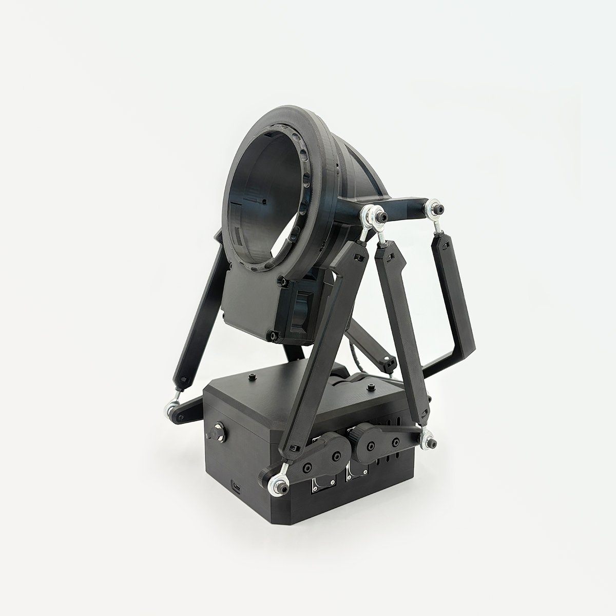 | ▫動作自由度 | 5軸モーション:Stroke(最大120mm)、Roll(最大30°)、Pitch(最大30°)、Surge(最大70mm)、Sway(最大70mm) | 6軸モーション:Stroke(最大120mm)、Roll(最大30°)、Pitch(最大30°)、Surge(最大70mm)、Sway(最大70mm)、Twist(最大270°回転) |