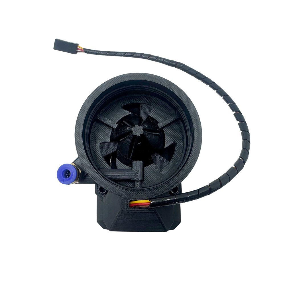 ロボットアームの動作と同期して自動的に開閉し、上下ストローク時の空気の流れをコントロールします。