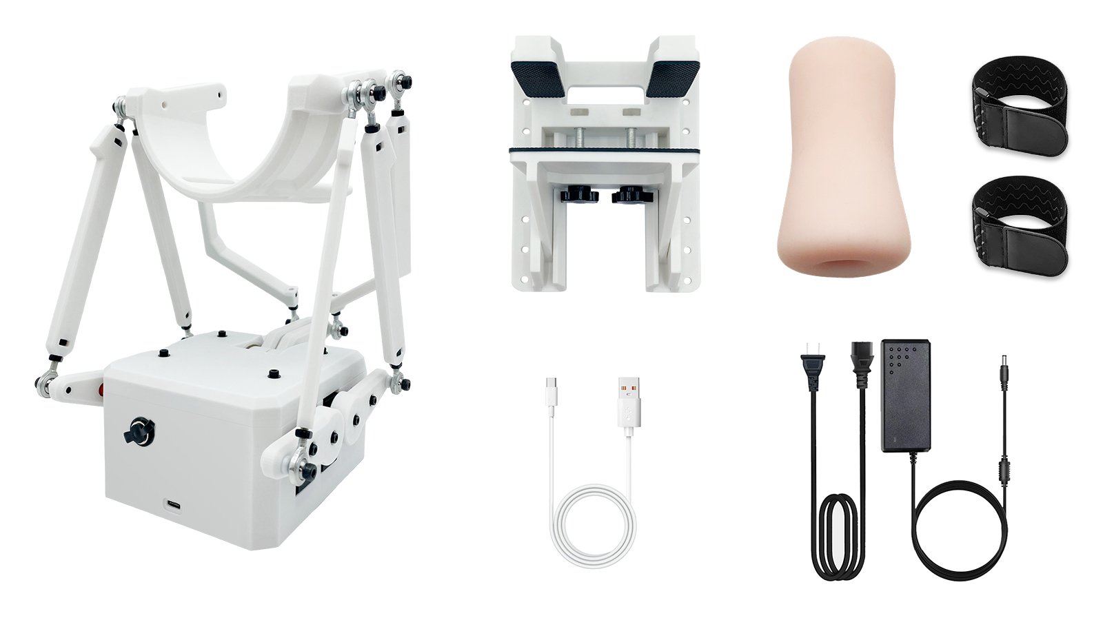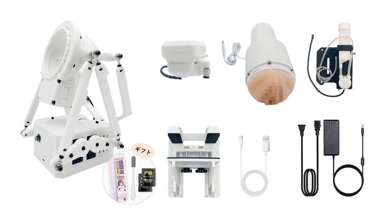 【Value Set Contents】① MiraBot S6 Main Unit (with Twist Module)   ② Dedicated Desk Mount   ③ Module Case & Hole (Vagina)   ④ T-Valve Air Valve   ⑤ i-Lube Lubricator   ⑥ Power Adapter & USB Cable